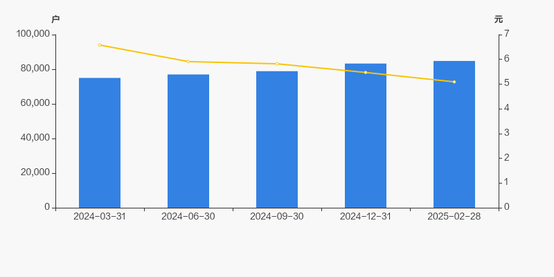 截至2025年2月28日,公司最新总股本为44.21亿股,且均为流通股。户均持有流通股数量由上期的5.31万股下降至5.21万股,户均流通市值26.54万元。