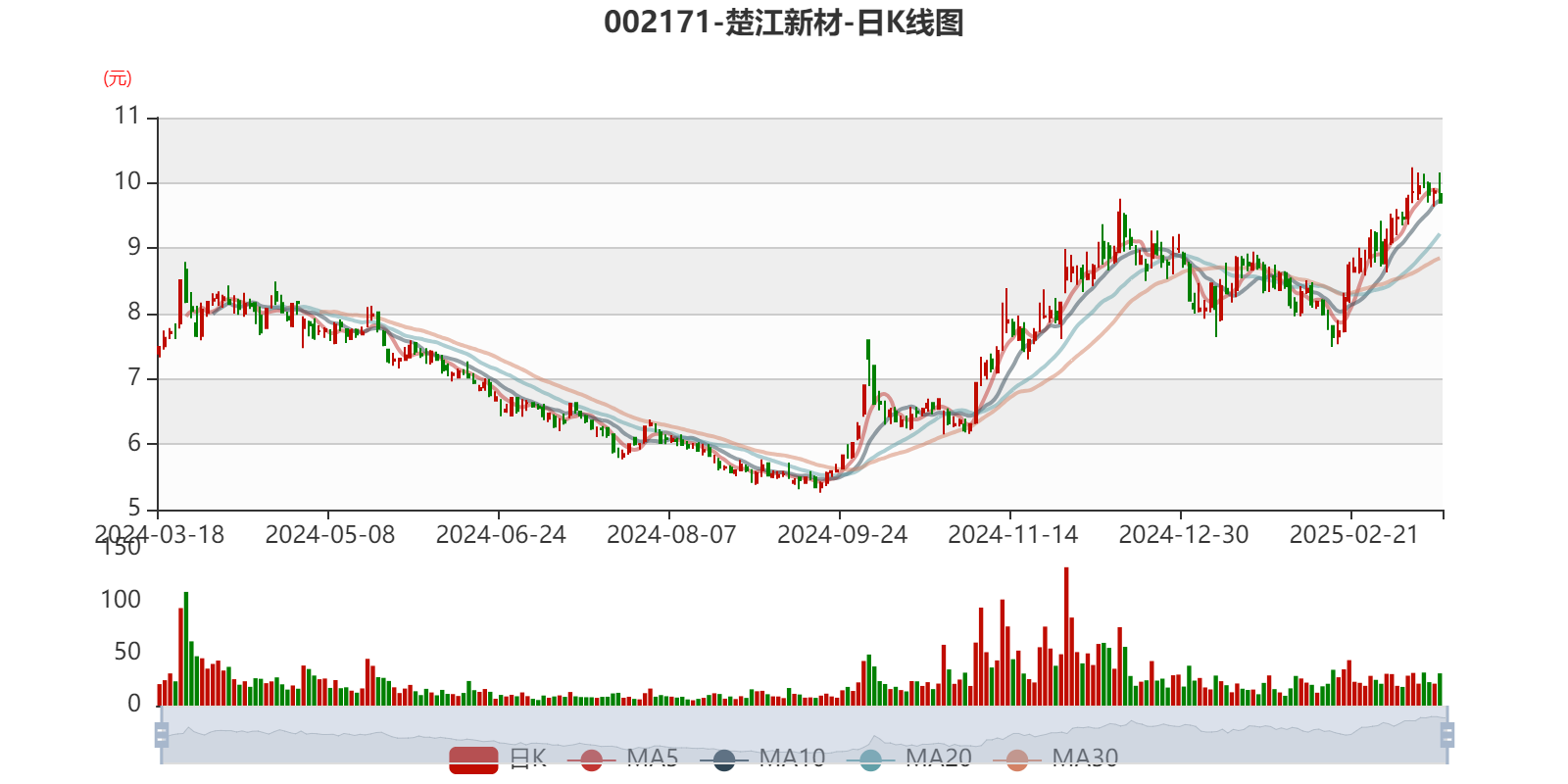 以3月17日收盘价计算,楚江新材目前市盈率(TTM)约为63.66倍,市净率(LF)约1.93倍,市销率(TTM)约0.27倍。