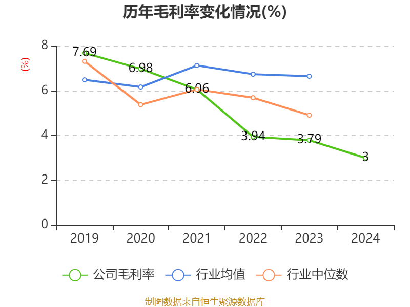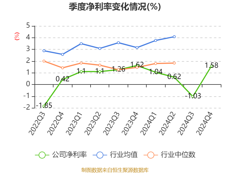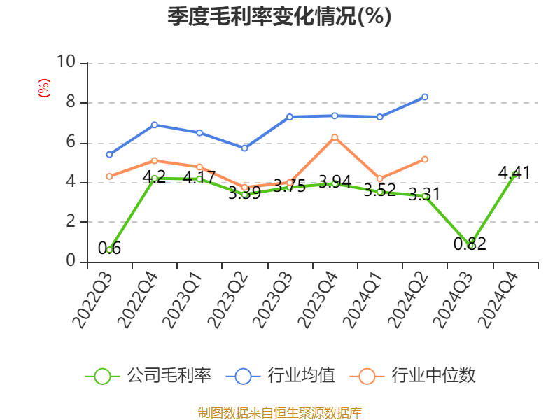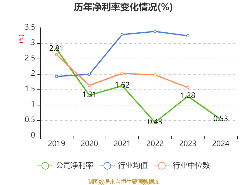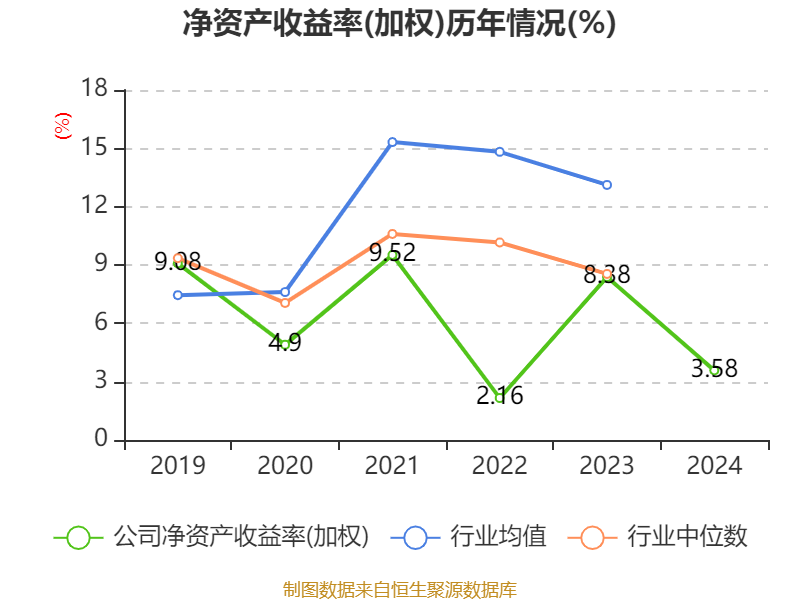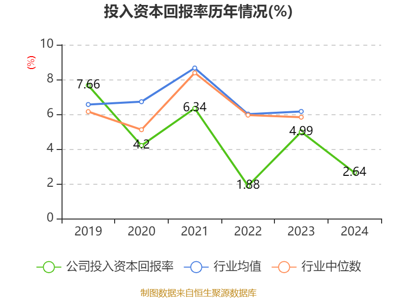 数据显示,2024年公司加权平均净资产收益率为3.58%,较上年同期下降4.8个百分点。公司2024年投入资本回报率为2.64%,较上年同期下降2.35个百分点。