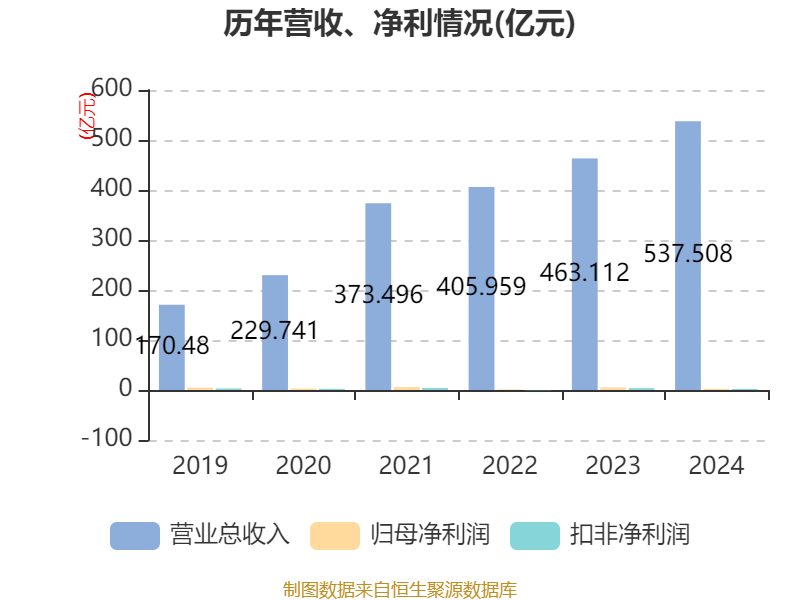 中证智能财讯楚江新材(002171)3月18日披露2024年年度报告。2024年,公司实现营业总收入537.51亿元,同比增长16.06%;归母净利润2.3亿元,同比下降56.57%;扣非净利润2.03亿元,同比下降45.69%;经营活动产生的现金流量净额为-6.57亿元,上年同期为1.78亿元;报告期内,楚江新材基本每股收益为0.18元,加权平均净资产收益率为3.58%。