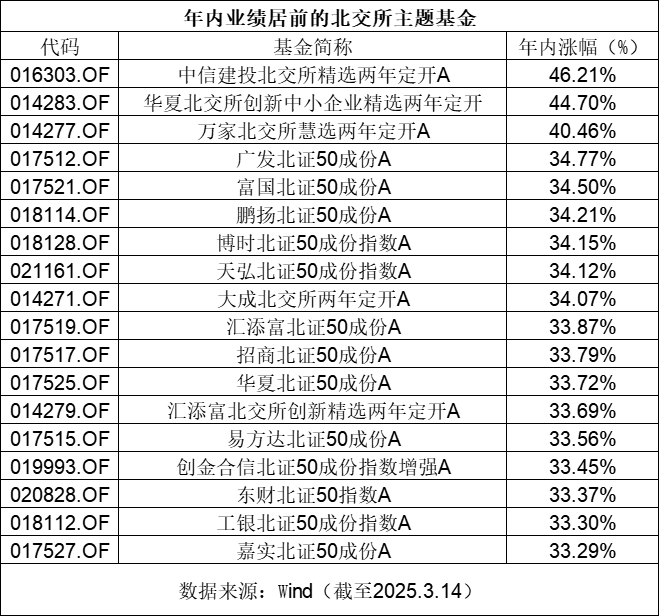 3月17日,北交所多只个股持续大涨,北证50涨1.85%,易实精密、晶赛科技等多只股票30cm涨停。在个股持续高涨带动下,北交所主题基金业绩表现十分亮眼,有27只北交所主题基金年内业绩回报超过30%。
