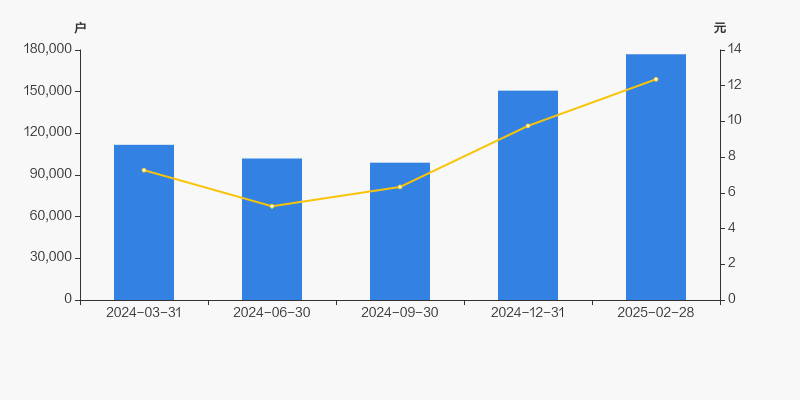 截至2025年2月28日,公司最新总股本为12.18亿股,其中流通股本为10.02亿股。户均持有流通股数量由上期的6601股下降至5664股,户均流通市值7万元。