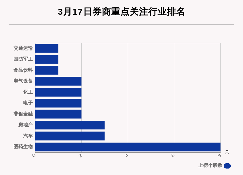 从券商对行业的关注度来看,券商关注个股数居前的行业分别是医药生物、汽车、房地产。
