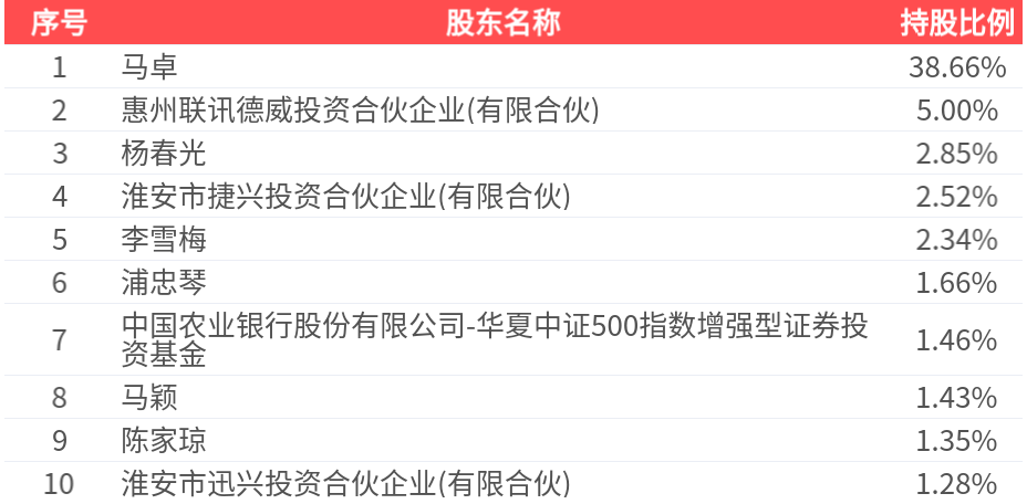 公司股东户数为5200户,前十大股东持股数量为7810.43万股,占总股本比例为58.55%,前十大股东持股情况如下: