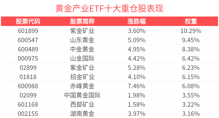 黄金产业ETF紧密跟踪中证沪深港黄金产业股票指数,中证沪深港黄金产业股票指数从内地与香港市场中,选取50只市值较大且业务涉及黄金采掘、冶炼、销售的上市公司证券作为指数样本,以反映内地与香港市场中黄金产业上市公司证券的整体表现。