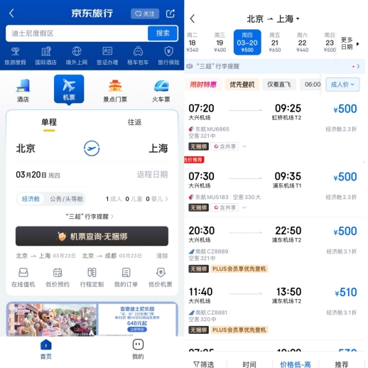 张女士计划趁着春暖花开去旅游,便选择在京东预订机票:“页面简洁明了,真的没有任何捆绑的费用,如果我需要保险可以再自由勾选,整个订票过程非常丝滑。而且我是PLUS会员,还能享受南航的优先登机权益,以后我订票都要选京东了。”