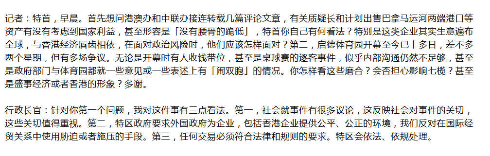 【导读】长和出售港口,李家超发声