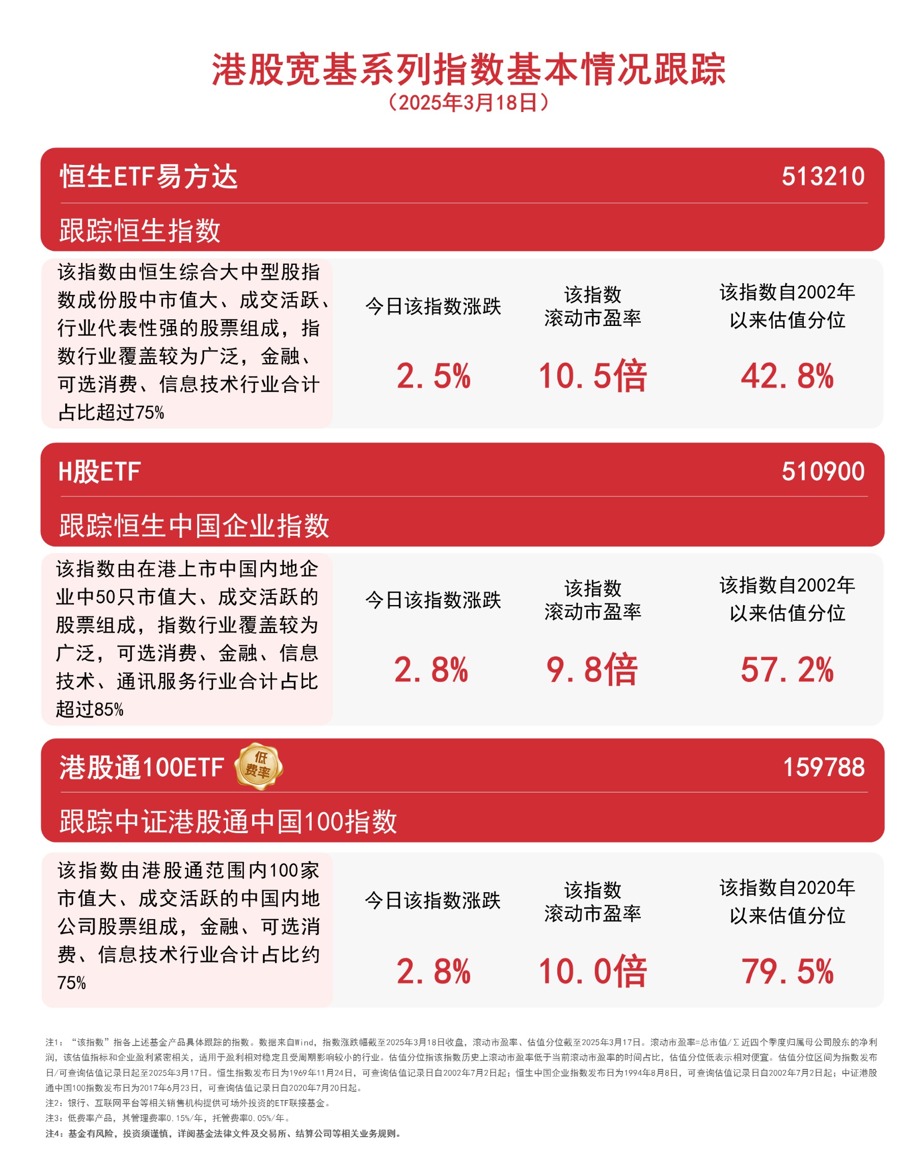 港股今日高开高走,截至收盘,恒生指数上涨2.5%,恒生中国企业指数、中证港股通中国100指数均上涨2.8%。