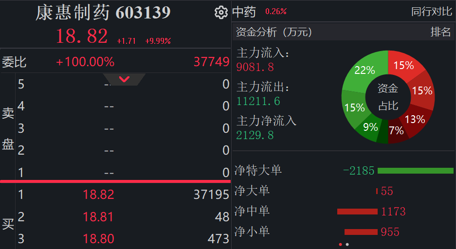 在停牌公告发布前,康惠制药已经连续两个交易日涨停,最新价报18.82元/股,总市值达18.80亿元。