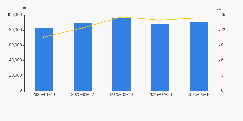 截至2025年3月10日,公司最新总股本为6.38亿股,其中流通股本为5.5亿股。户均持有流通股数量由上期的6209股下降至6047股,户均流通市值8.74万元。