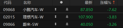 上证报中国证券网讯 3月19日,港股新能源车企盘初走低。9时42分,小鹏汽车-W跌超7%,理想汽车-W、蔚来-SW跌超3%。