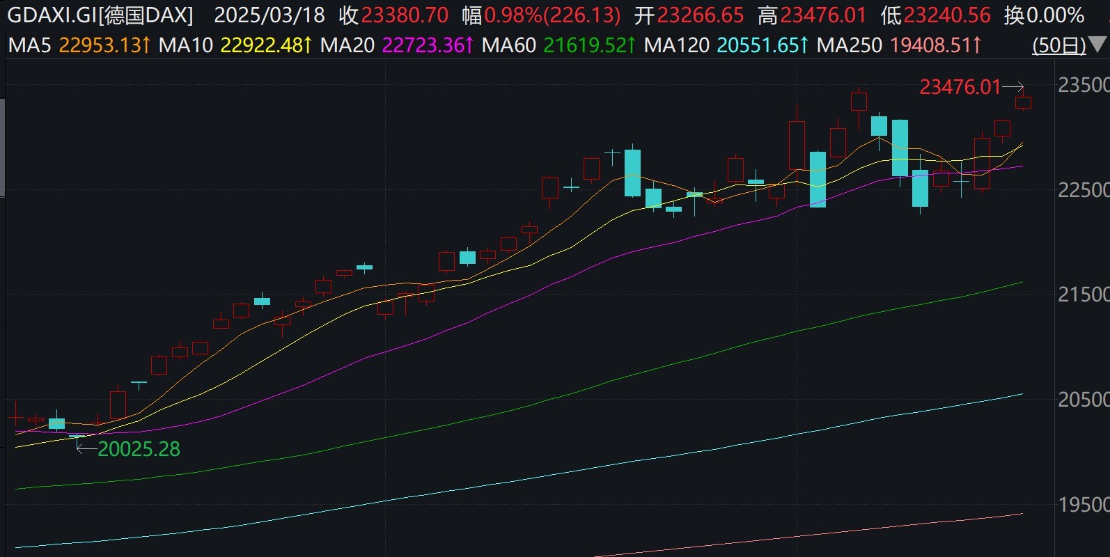 德国DAX指数昨日涨0.98%,盘中触及23476.01点,创出新高。