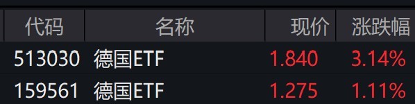 受盘面影响,场内两只德国ETF分别涨3.14%和1.11%。