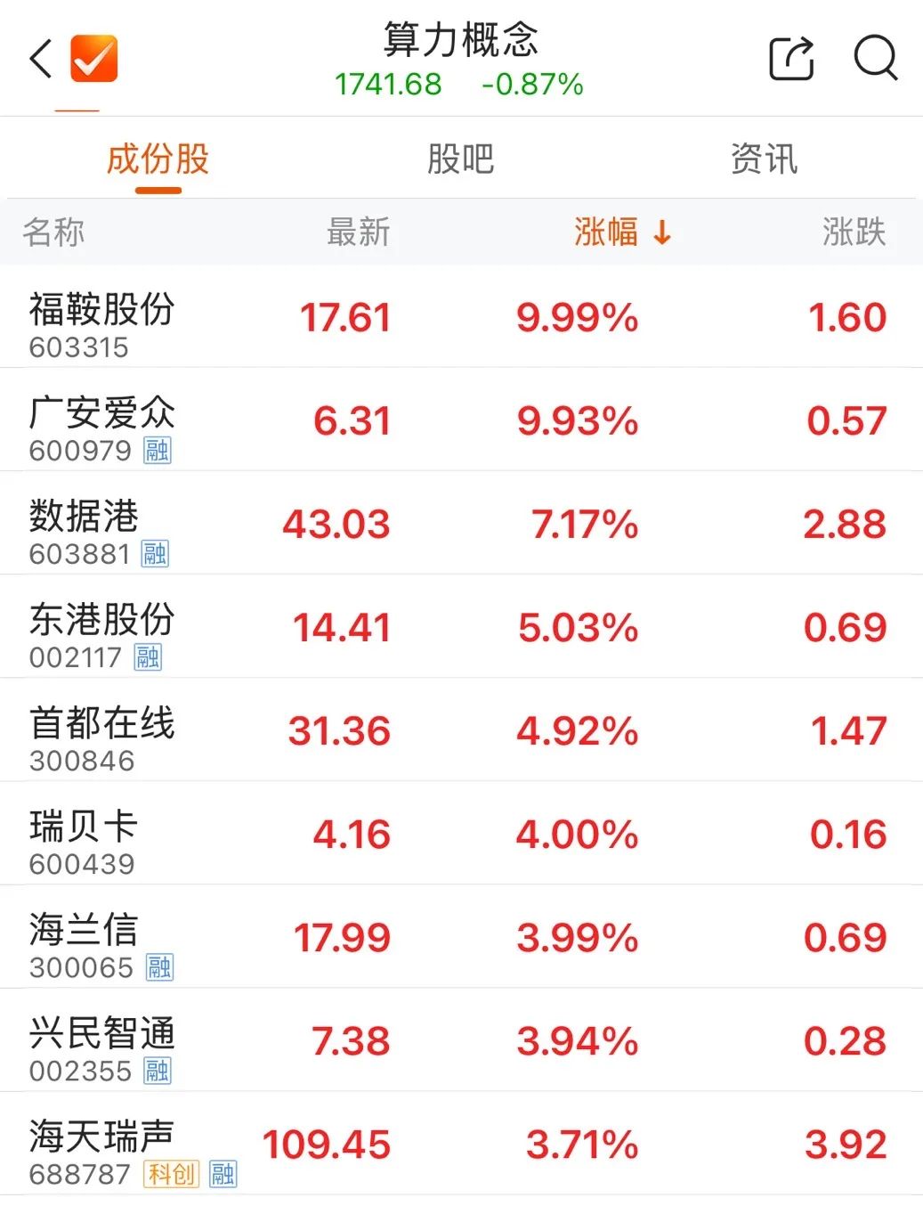 3月19日,接近午间收盘时,算力概念走高,数据港盘中直线拉升涨超7%。截至发稿,福鞍股份、广安爱众等多只个股涨停,首都在线、东港股份等纷纷跟涨。