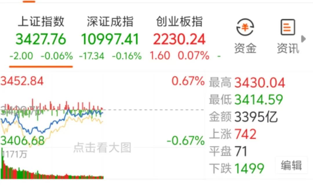周三早盘,A股市场探底回升,三大指数涨跌不一。截至午间收盘,沪指跌0.06%,深证成指跌0.16%,创业板指涨0.07%。沪深两市半日成交额9157亿元,较上个交易日同期缩量427亿元。