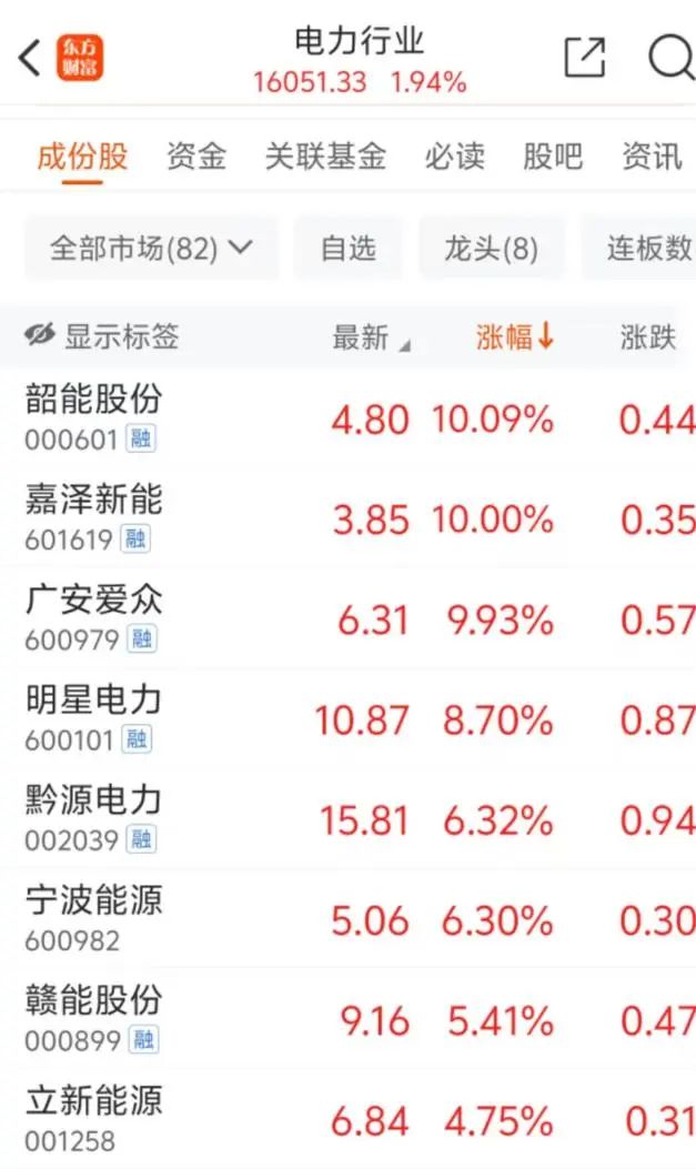 3月19日早盘,电力板块震荡拉升。截至发稿,韶能股份涨停,明星电力、宁波能源等多只个股跟涨。
