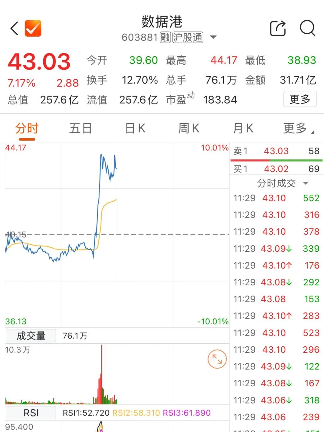 数据港直线拉升涨超7%