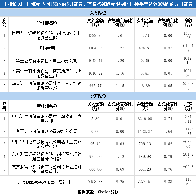 龙虎榜数据显示,今日买二为机构席位,该席位净买入610.47万元,占该股今日总成交额的0.7%。