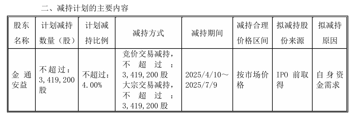值得注意的是,此前,金通安益曾宣布拟在2024年10月30日至2025年1月29日进行“清仓式”减持。不过,减持期届满后,金通安益并未实际减持。