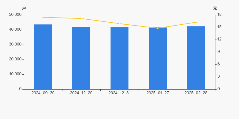 截至2025年2月28日,公司最新总股本为3.72亿股,其中流通股本为3.71亿股。户均持有流通股数量由上期的8914股下降至8767股,户均流通市值14.22万元。