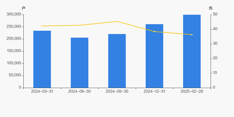 自2024年6月30日以来,公司股东户数连续3期上涨,截至目前增幅为45.63%。2024年6月30日至2025年2月28日区间股价下降15.00%。