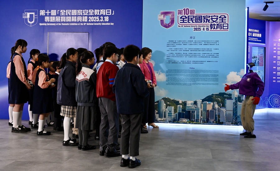 3月18日,第十个“全民国家安全教育日”将至,香港历史博物馆国家安全展览厅推出“全民国家安全教育日”专题展览。开幕仪式上,宇树科技研发的人形机器人化身“AI国家安全讲师”,向现场嘉宾及学生们介绍展览内容。