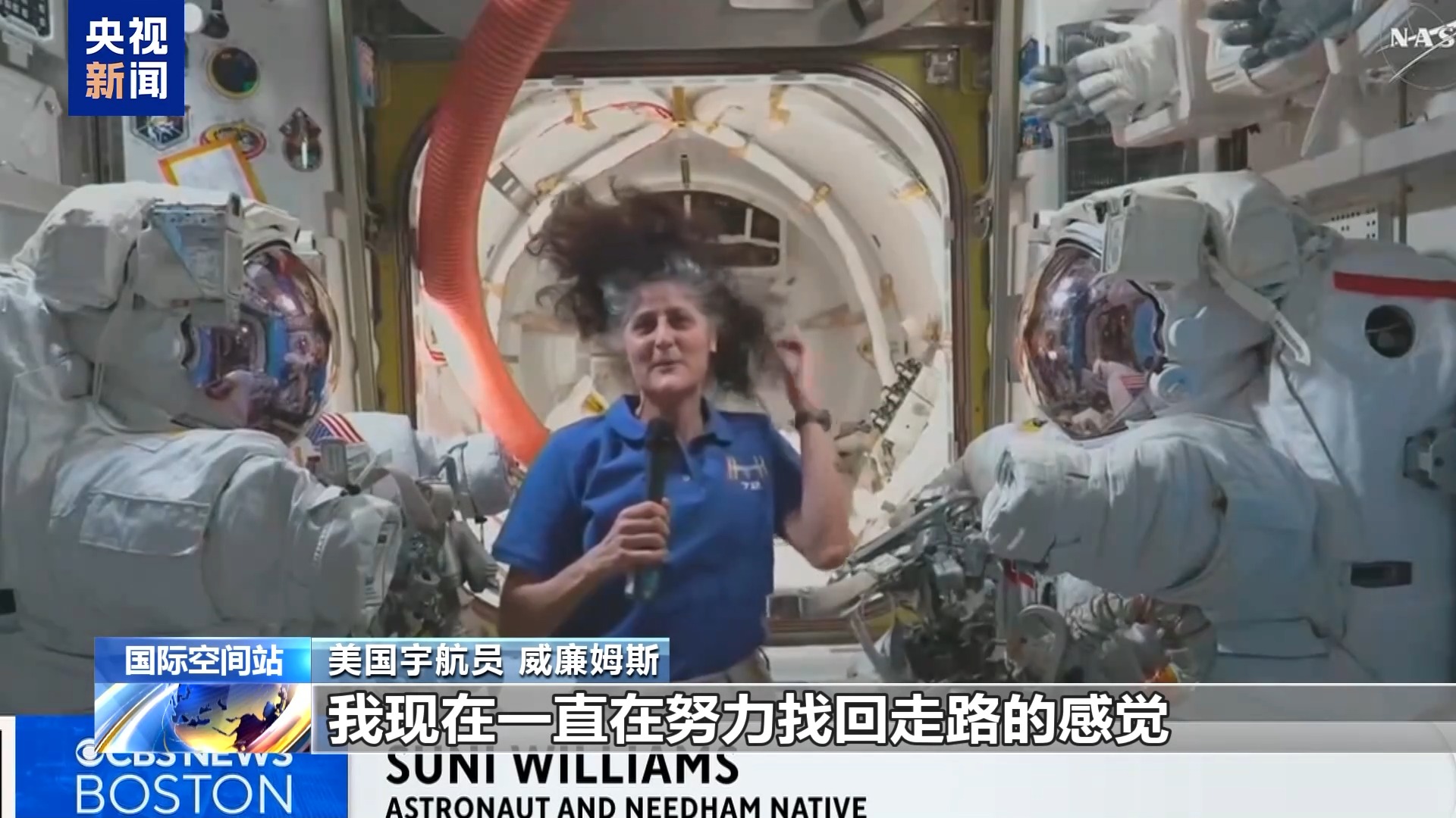 美国宇航员威廉姆斯:我现在一直在努力找回走路的感觉,在太空我没走路,没坐下,也没有躺下。