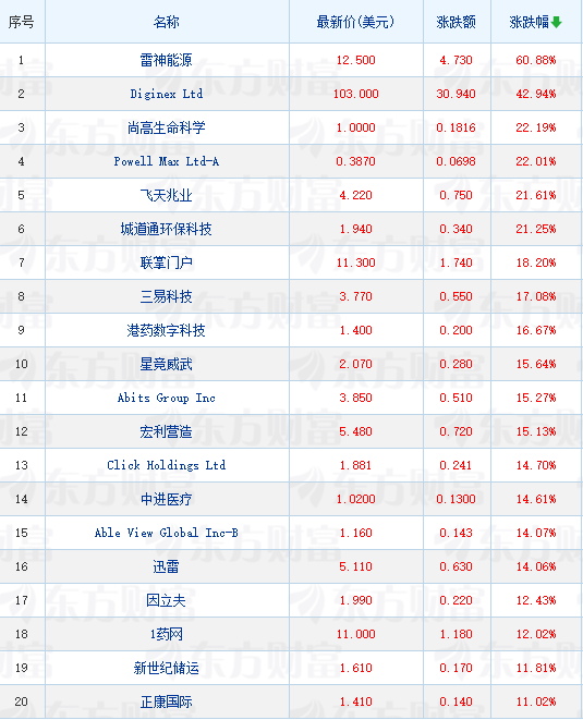 领涨中概股列表: