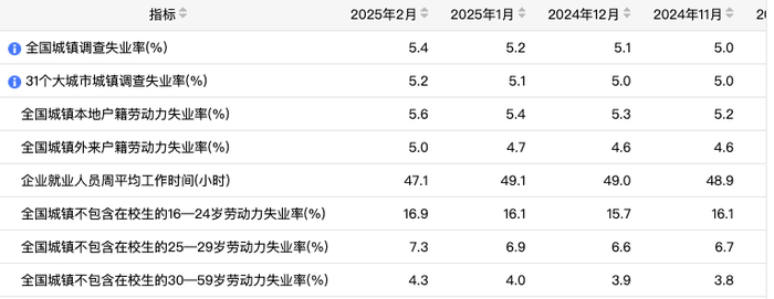 国家统计局发布2月份分年龄组失业率数据:2月份,全国城镇不包含在校生的16-24岁劳动力失业率为16.9%,不包含在校生的25-29岁劳动力失业率为7.3%,不包含在校生的30-59岁劳动力失业率为4.3%。