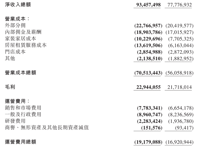 不过,从前述数据也可以看出,随着家装家居及房屋租赁服务的扩张与增长,成本也在明显上涨。