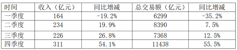 2024年三季度,贝壳总交易额7368亿元,同比增长12.5%。四季度更是迎来爆发,总交易额11438亿元,同比增长55.5%;净收入同比增长54.1%,达到311亿元。