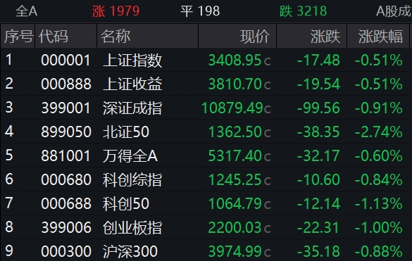 两市全天成交额1.44万亿元。个股跌多涨少,全市场超3200只个股下跌。