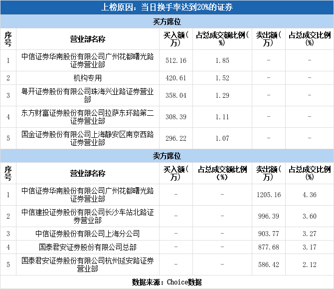 上交所2025年3月20日交易公开信息显示,南方路机因属于当日换手率达到20%的证券而登上龙虎榜。南方路机当日报收25.45元,涨跌幅为0.16%,换手率37.55%,振幅11.57%,成交额2.77亿元。