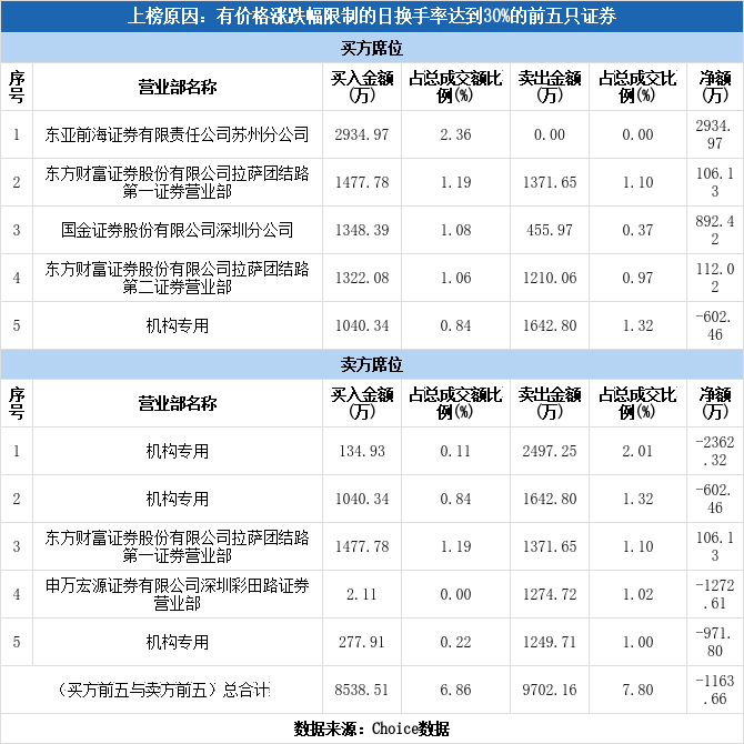 龙虎榜数据显示,今日共4个机构席位出现在龙虎榜单上,分别位列买五、卖一、卖二、卖五,合计净卖出3936.58万元,占龙虎榜净卖额的338.29%。