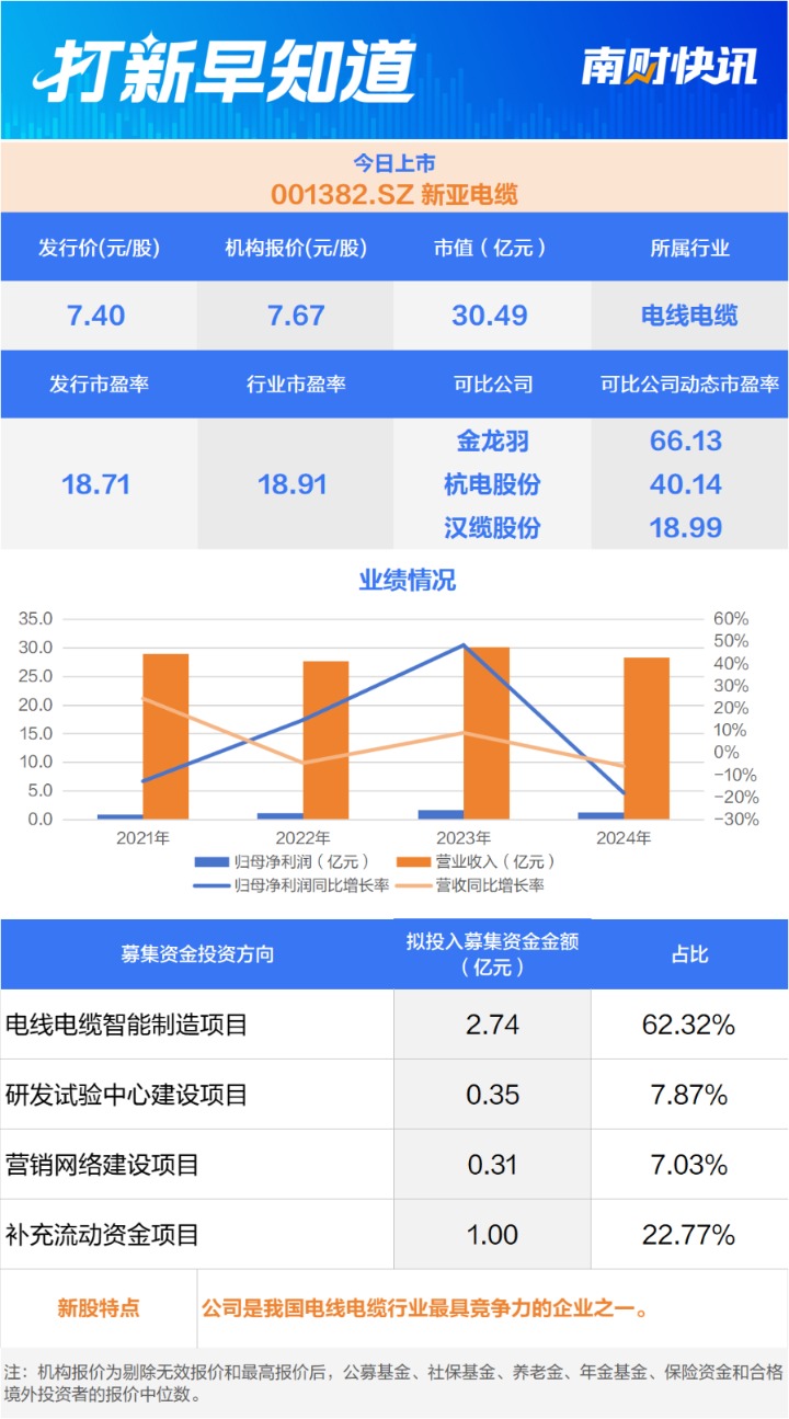 第一大客户为南方电网,电线电缆知名企业今日上市 | 打新早知道