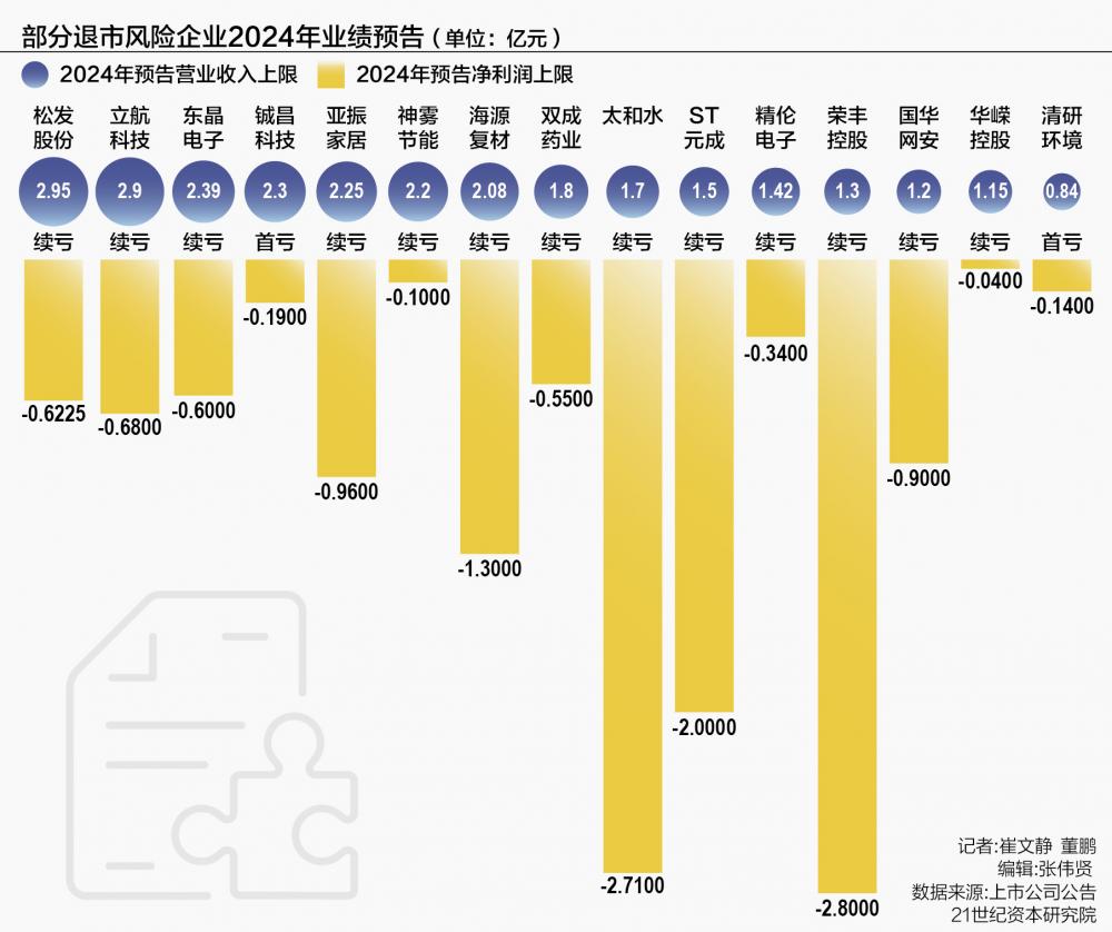 譬如山东荣丰控股发布可能被实施退市风险警示的二次提示公告,即因为该公司因预计2024年各项利润数据亏损,同时当期营业收入低于3亿元,触发了交易所的财务性退市指标。