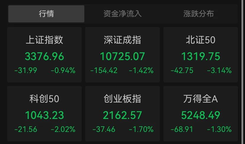 3月21日早盘,A股主要指数走弱,创业板指领跌,沪指回落至3400点下方。截至午间收盘,创业板指跌1.7%,报2162.57点;上证指数跌0.94%,报3376.96点;深证成指跌1.42%,报10725.07点。