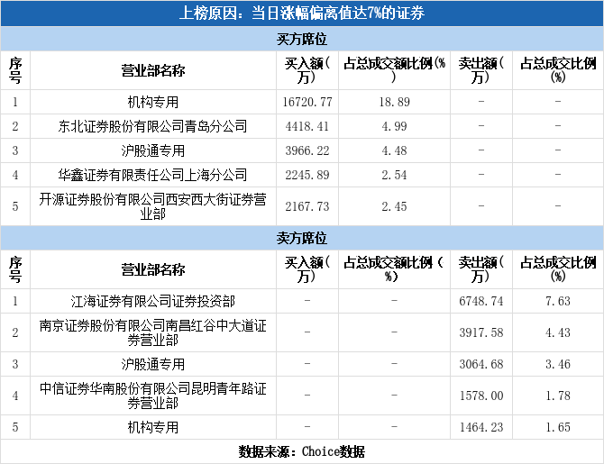 今日龙虎榜单上出现了沪股通的身影,占据了买三、卖三的位置,净买入901.54万元,占当日成交总额的1.02%。