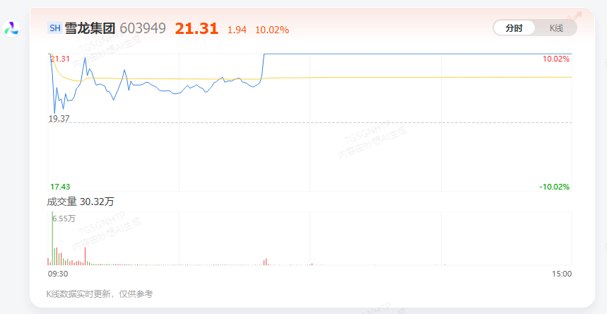 近期机器人概念板块整体表现活跃,雪龙集团作为相关概念股受到市场关注。