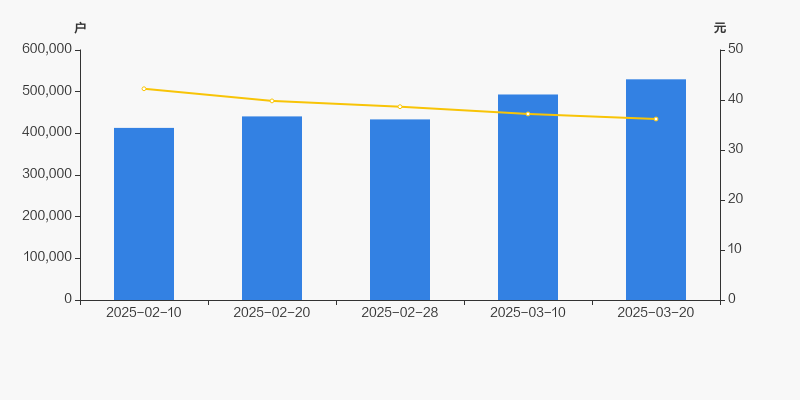 截至2025年3月20日,公司最新A股总股本为47.84亿股,其中流通股本为40.27亿股。户均持有流通股数量由上期的8165股下降至7604股,户均流通市值27.53万元。