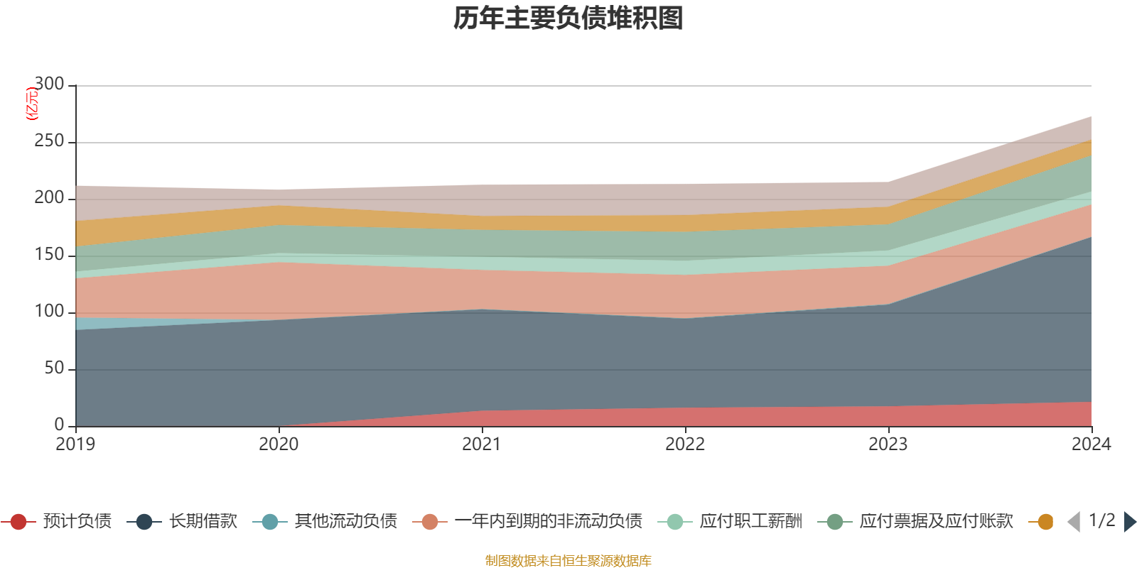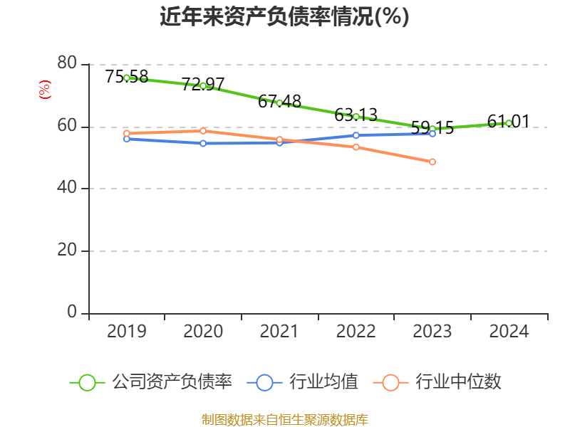 负债重大变化方面,截至2024年末,公司长期借款较上年末增加61.9%,占公司总资产比重上升7.79个百分点;一年内到期的非流动负债较上年末减少15.56%,占公司总资产比重下降2.91个百分点;短期借款较上年末减少10.35%,占公司总资产比重下降1.16个百分点;应付职工薪酬较上年末减少14.9%,占公司总资产比重下降1.15个百分点。