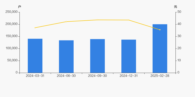 截至2025年2月28日,公司最新A股总股本为198.69亿股,其中流通股本为164.91亿股。户均持有流通股数量由上期的12.07万股下降至8.24万股,户均流通市值292.26万元。