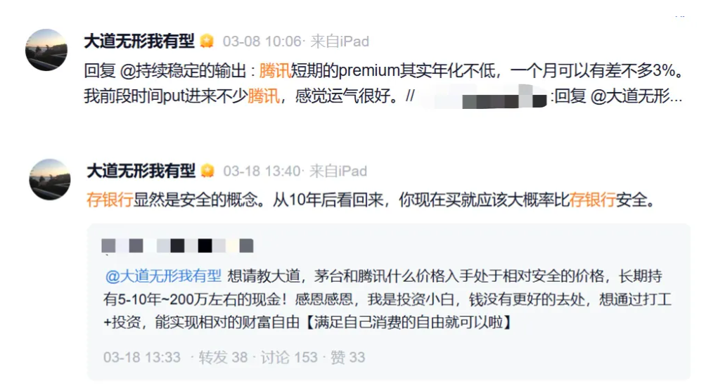 近期,段永平频频发声提及腾讯。段永平表示:“我前段时间put进来不少腾讯,感觉运气很好。”有网友向段永平提问:“茅台和腾讯什么价格入手处于相对安全的价格,长期持有5-10年~200万左右的现金!”