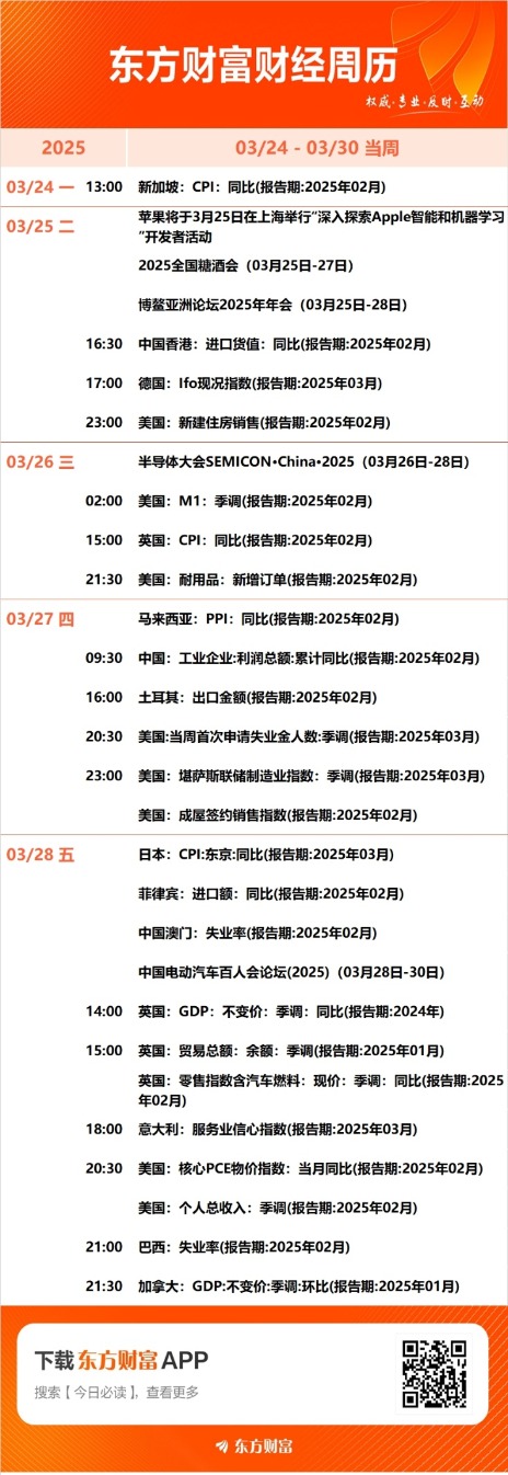 3月24日至3月30日重磅财经事件一览: