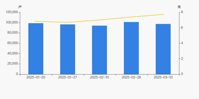截至2025年3月10日,公司最新总股本为7.73亿股,其中流通股本为6.51亿股。户均持有流通股数量由上期的6422股上升至6670股,户均流通市值5.16万元。