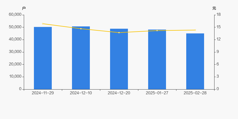 截至2025年2月28日,公司最新总股本为5.05亿股,其中流通股本为4.96亿股。户均持有流通股数量由上期的1.03万股上升至1.1万股,户均流通市值15.76万元。
