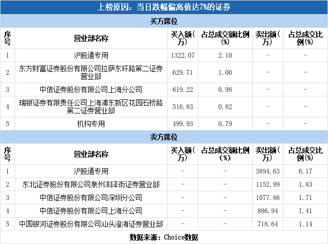 今日龙虎榜单上出现了沪股通的身影,占据了买一、卖一的位置,净卖出2572.56万,占当日成交总额的4.08%。