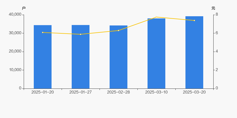 截至2025年3月20日,公司最新总股本为7.37亿股,其中流通股本为5.81亿股。户均持有流通股数量由上期的1.53万股下降至1.48万股,户均流通市值10.95万元。
