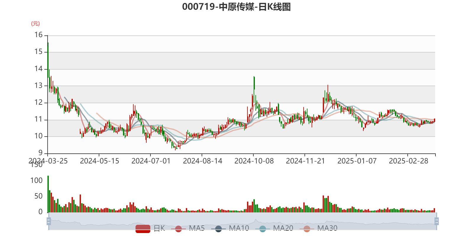 中证智能财讯中原传媒(000719)3月24日晚间披露2024年业绩快报,公司实现营业收入98.57亿元,同比增长0.24%;归母净利润10.53亿元,同比下降24.18%;扣非净利润12.73亿元,同比增长14.15%;基本每股收益1.03元,加权平均净资产收益率为9.39%。以3月24日收盘价计算,中原传媒目前市盈率(TTM)约为10.74倍,市净率(LF)约1.03倍,市销率(TTM)约1.14倍。