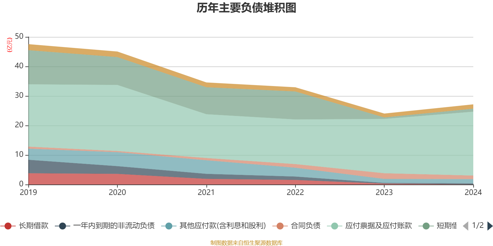 负债重大变化方面,截至2024年末,公司应付票据及应付账款较上年末增加17.62%,占公司总资产比重上升4.01个百分点;合同负债较上年末减少37.82%,占公司总资产比重下降2.55个百分点;短期借款较上年末增加99.97%,占公司总资产比重上升1.25个百分点;长期借款较上年末减少100%,占公司总资产比重下降0.85个百分点。